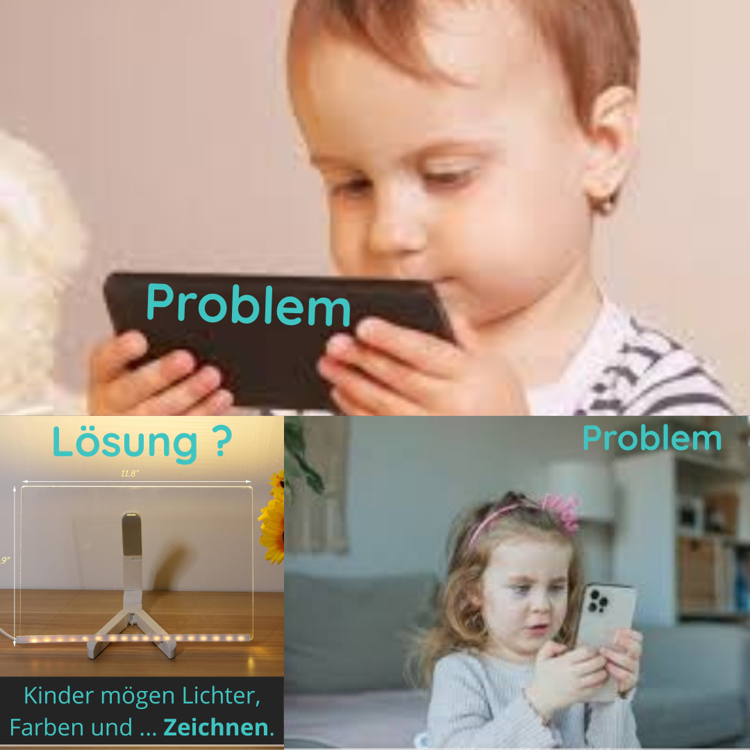 Kinder mögen Farben und Lichter... Aber sie malen auch gerne. Bieten Sie ihnen die Tafel an, wenn sie nach dem Tablet oder Handy fragen.